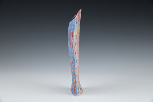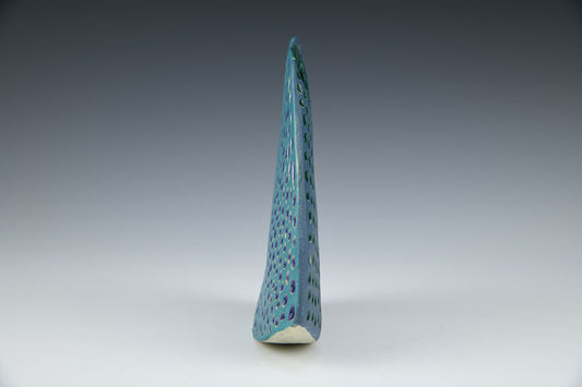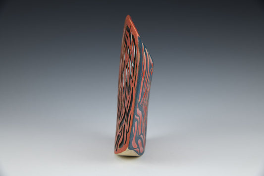 A unique and whimsical take on everyday objects, these cup and mug shapes are flattened, offering the surprise of an optical illusion. Decorated with lavish sgraffito to create stunning textures and playful colors, they are meant to be enjoyed as artistic sculptures and conversation starters.